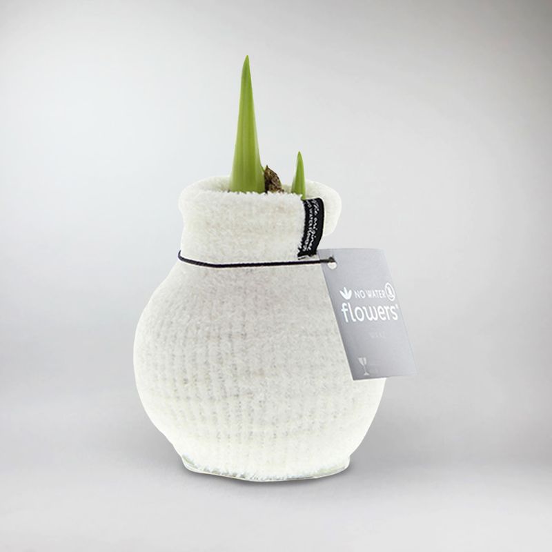 Amaryllis Bulb in White Knitted Decoration (Cozy White)