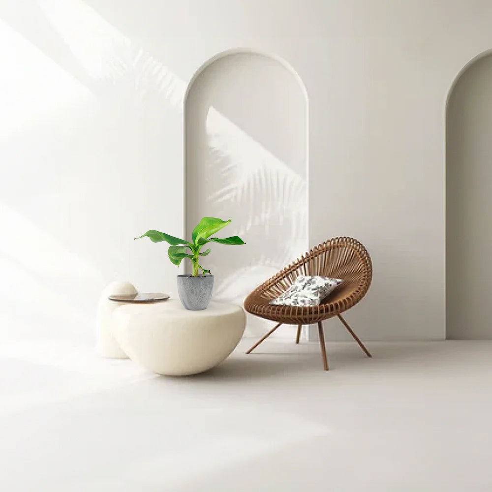 With this combo, you'll receive the Musa acuminata Dwarf Cavendish Banana Plant, known for its tropical beauty and resilience, along with a Grey Bola Pot, the ultimate tropical addition to elevate any home or office decor.