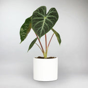 Alocasia Black Velvet is a jewel alocasia prized for its velvety, deep green leaves and crisp silver veins. Compact but dramatic, it suits side tables and plant cabinets beautifully. Provide bright, indirect light, steady warmth, and higher humidity. Water when the top few centimetres of compost are dry and use a chunky mix to prevent soggy roots.