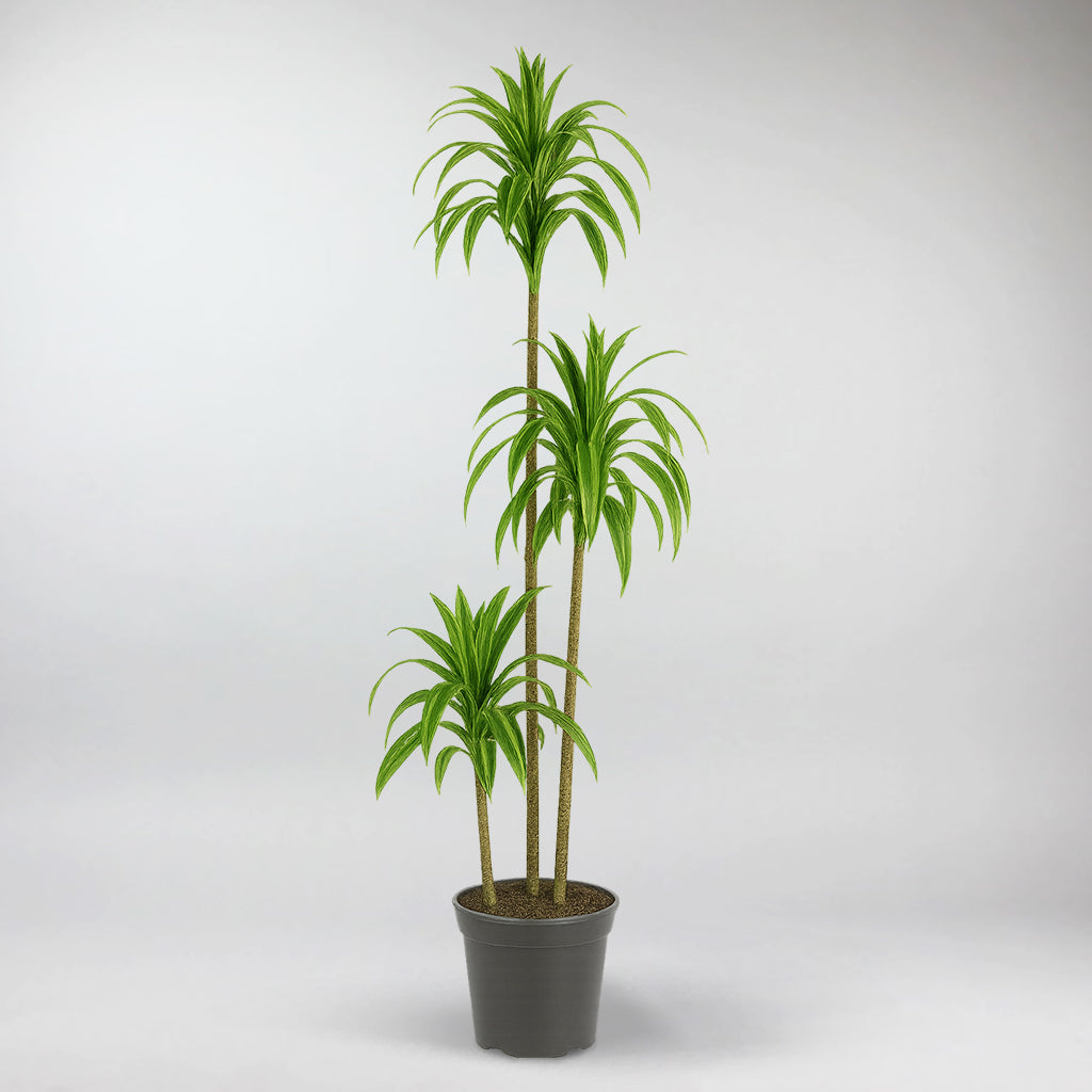 The Dracaena Hawaiian Sunshine sports long, narrow leaves edged in sunny yellow with a deep green core. Each cane-like stem rises in a graceful column, crowned by a rosette full of bright foliage. Whether in a sleek ceramic floor pot or a minimalist planter on a console, it elevates urban lofts, Scandi-inspired rooms, and lush retreat-style interiors. Position it beside a favorite armchair, on a plant stand in an entryway, or in a sunlit corner to let the hues truly shine.