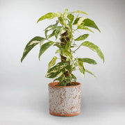 When it comes to Dragon Tail, think of each leaf as a tiny piece of marble — no two patterns are the same. Young leaves are lance-shaped with dramatic cream streaks, while older ones ripple, thicken, and often develop dramatic cuts that add architectural drama. The texture is slightly rippled and pleasantly leathery under the fingers, so it photographs beautifully and rewards casual caressing. Hang it where light can tease the variegation: a tall shelf, a high planter, or trained on a moss pole beside a favourite armchair.