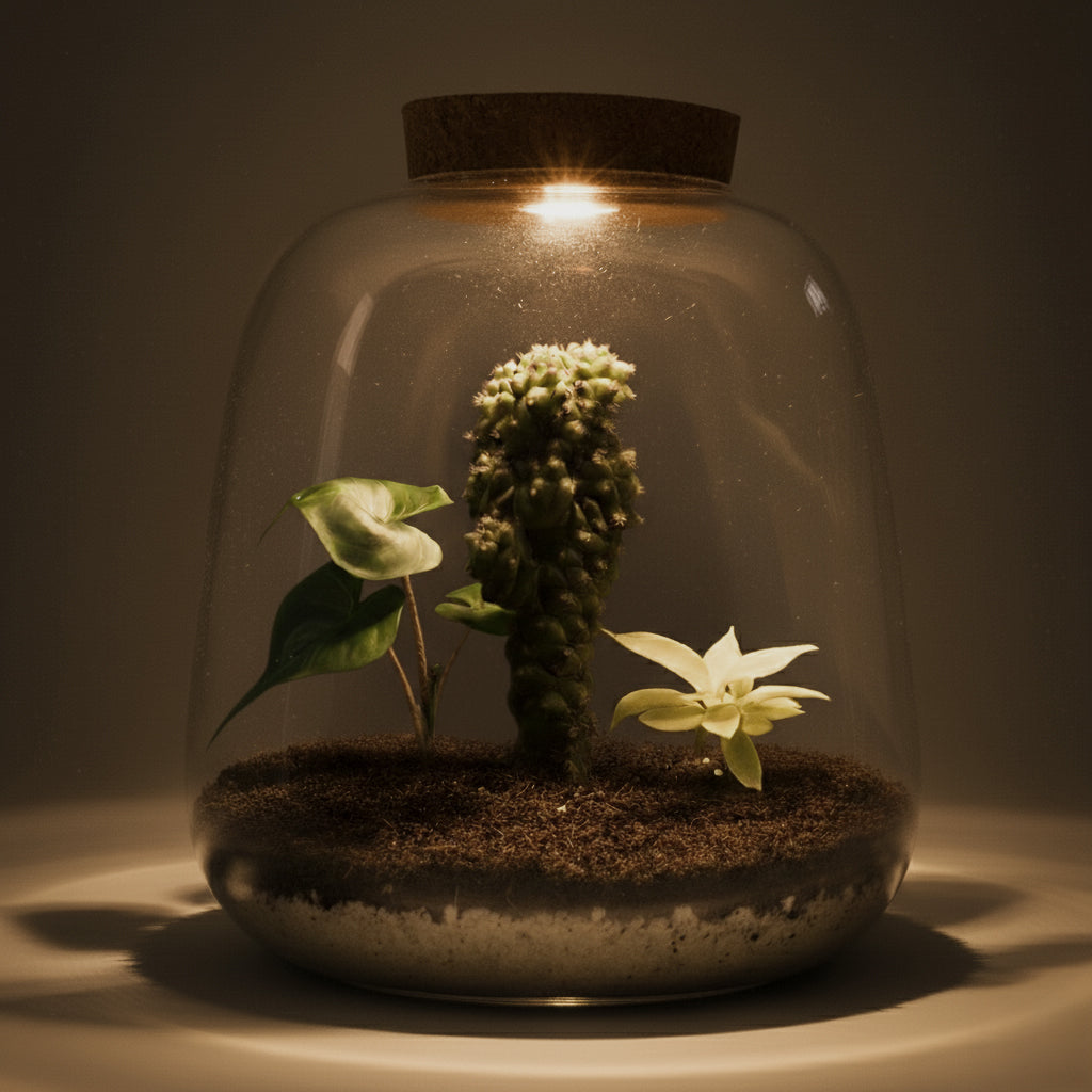 Build a compact, statement terrarium that blends glossy moonlit foliage, velvety dark leaves, and architectural succulent form. The Ray of Green Terrarium DIY Kit delivers high-contrast texture and effortless sophistication for desks, shelves, and intimate spaces.
