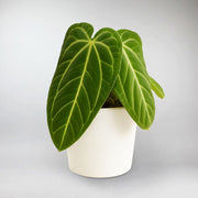 Anthurium villenaorum is a rare velvet‑leaf species with elongated heart‑shaped leaves and soft, pale veining. Its graceful form works beautifully in clean, modern interiors. It prefers warmth, higher humidity, and bright, indirect light. Water once the top compost dries and keep it in a loose, bark‑rich mix. Unusual, elegant, and manageable indoors.